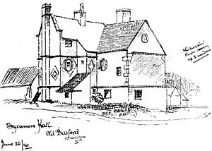 Sycamore Hall. This building, although of no great antiquity, is fast falling to decay. Denuded of its pleasant gardens and sheltering sycamore trees, it is but a shadow of its former state.